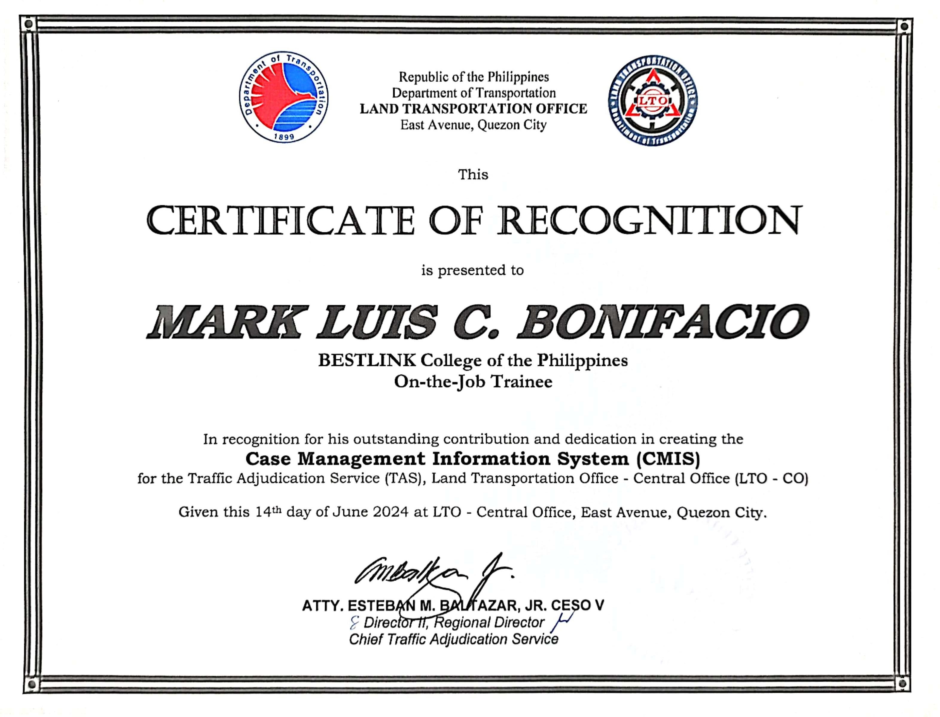 - Client: Land Transportation Office - Central Office (Traffic Adjudication Service)