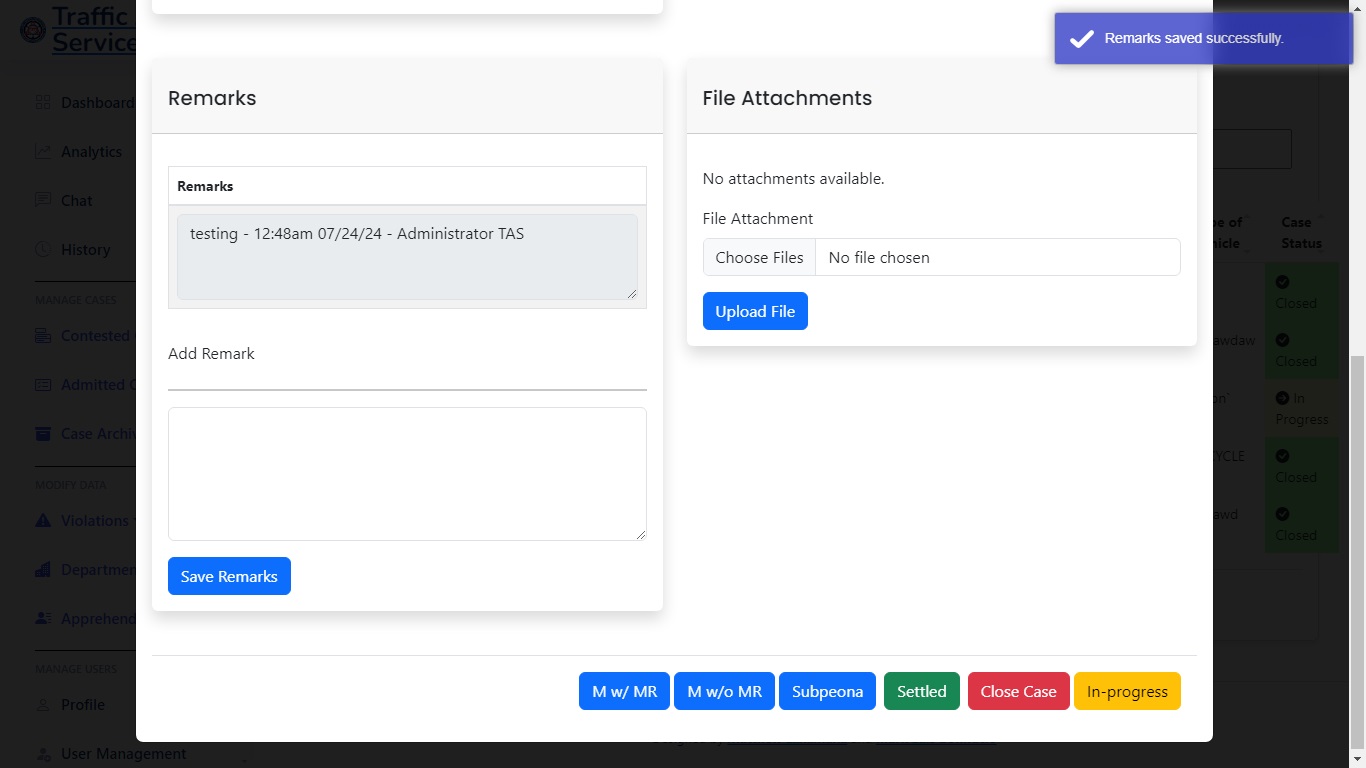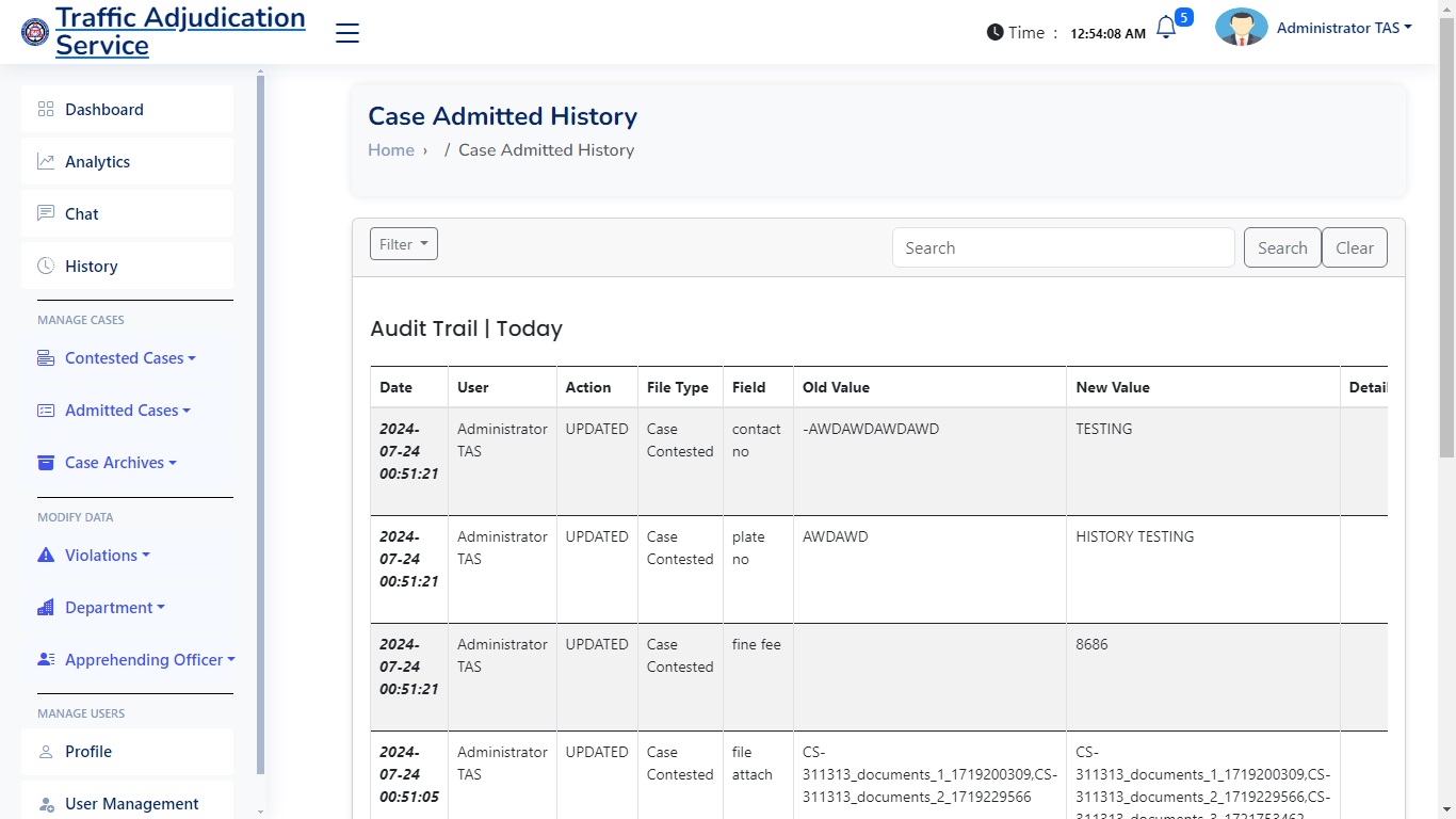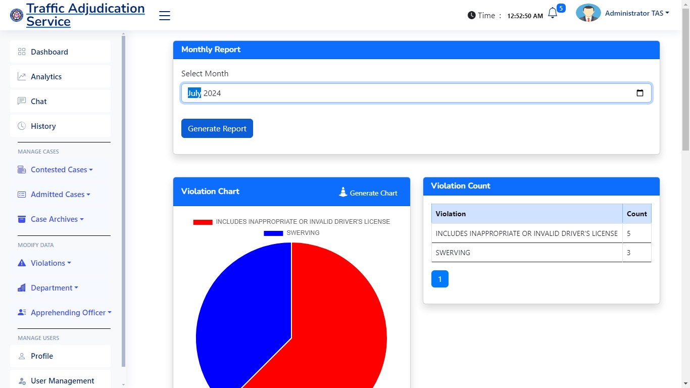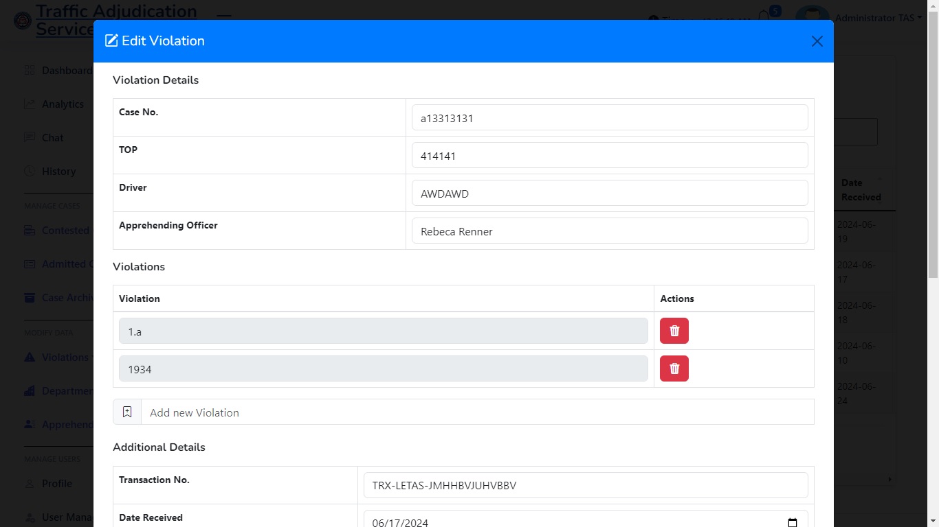 The Purpose of this web application is to handle and manage cases and reduce the manual work for 50%. With the ability to print automatically subpoena, has a analytics, audit trail, also a network local server system which the workers in the department of the traffic adjudication services can access.